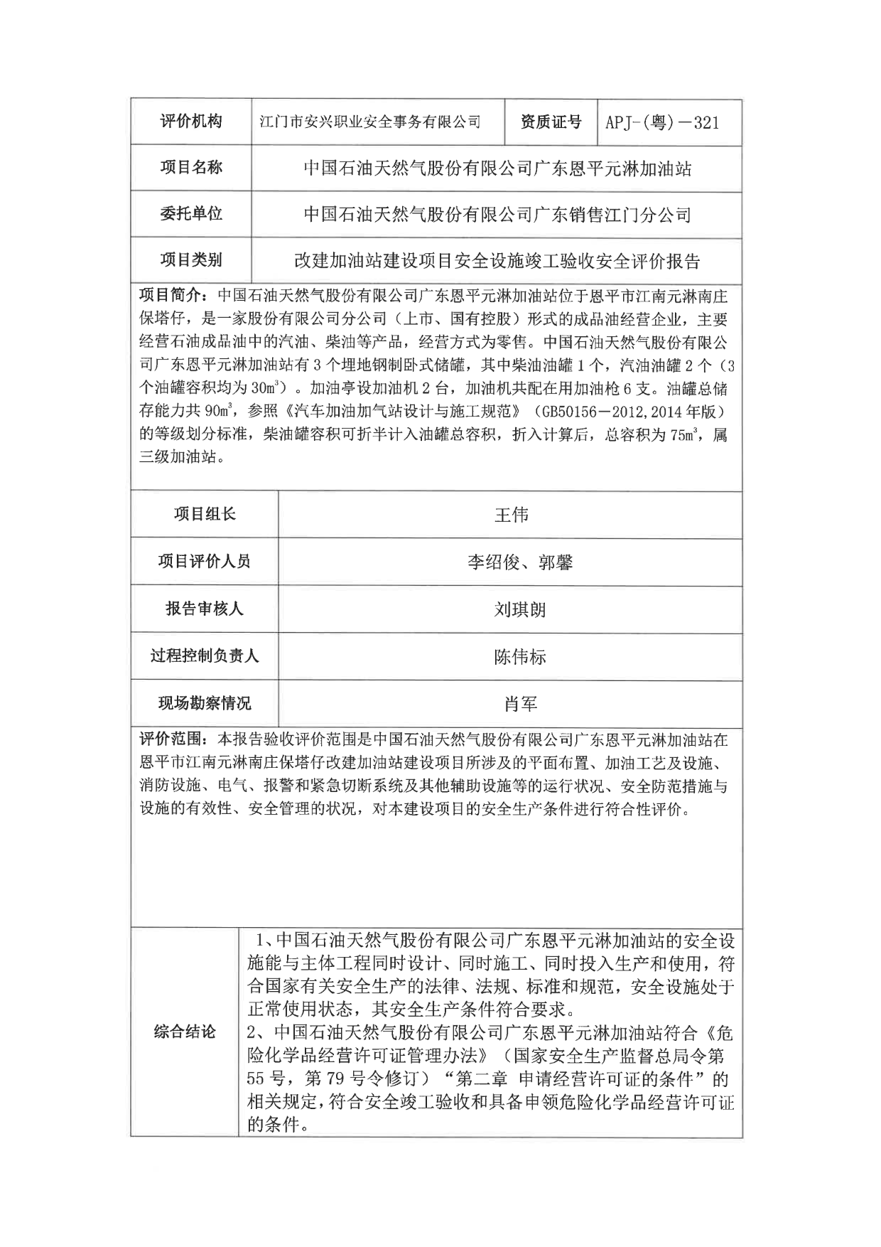 中国石油天然气股份有限公司广东恩平元淋加油站