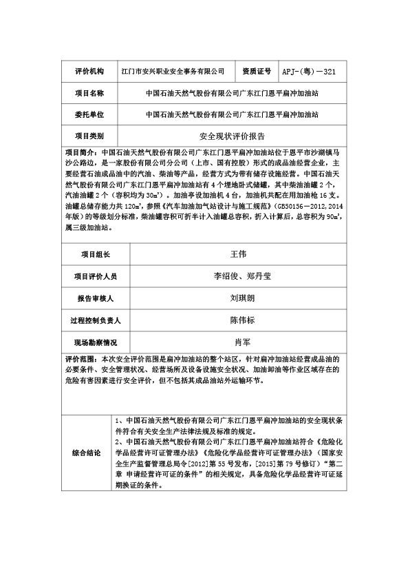 中国石油天然气股份有限公司广东江门恩平扁冲加油站
