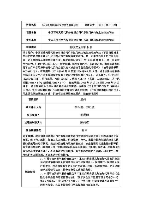 中国石油天然气股份有限公司广东江门鹤山城北加油加气站