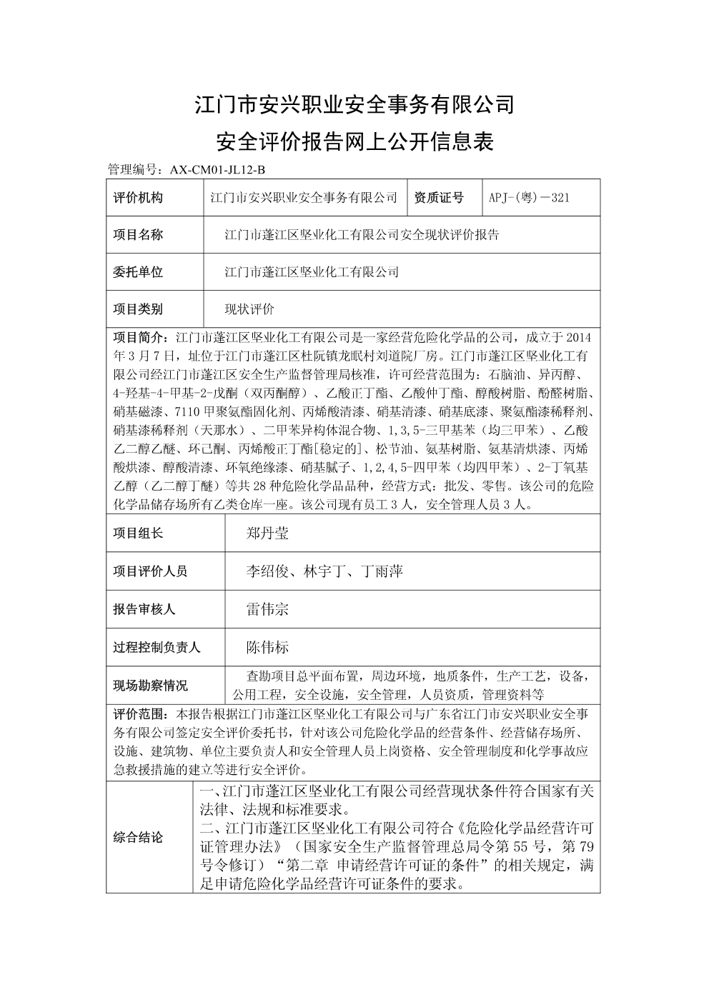 江门市蓬江区坚业化工有限公司