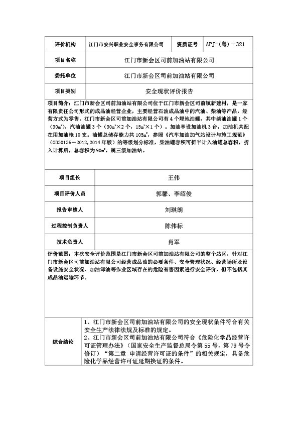 江门市新会区司前加油站有限公司信息公布