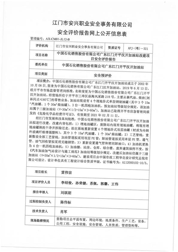 中石化广东江门汉开加油站预评价