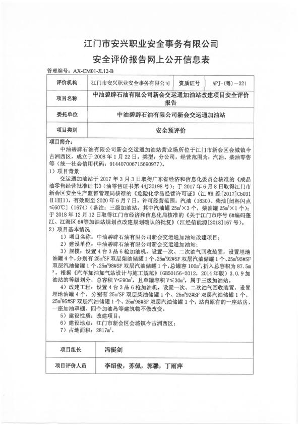 中油碧辟新会交运通加油站预评价