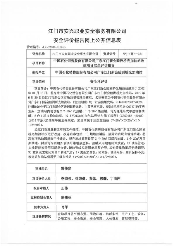 中石化广东新会睦州桥光加油站预评价