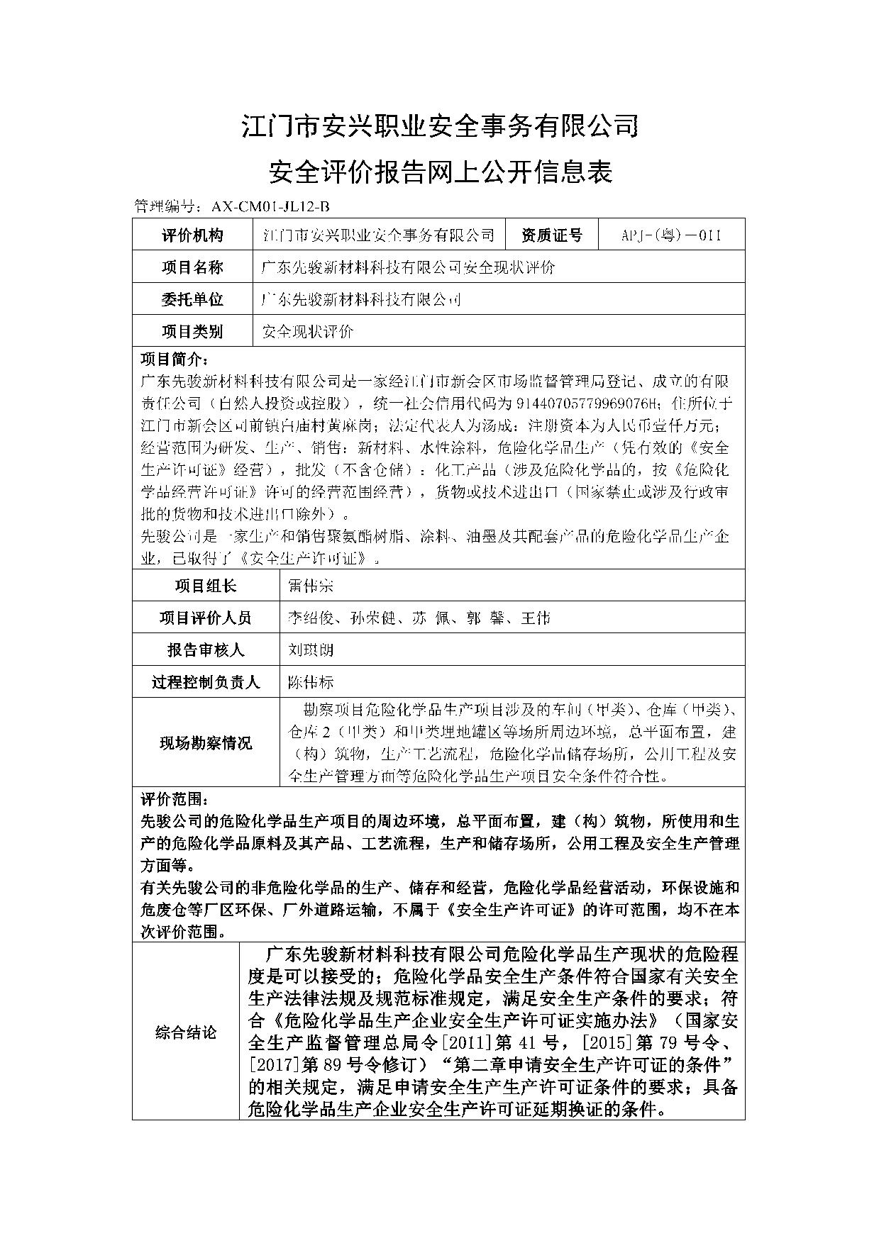 广东先骏新材料科技有限公司(生产)