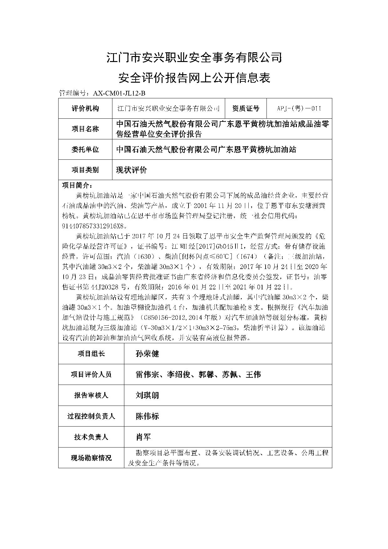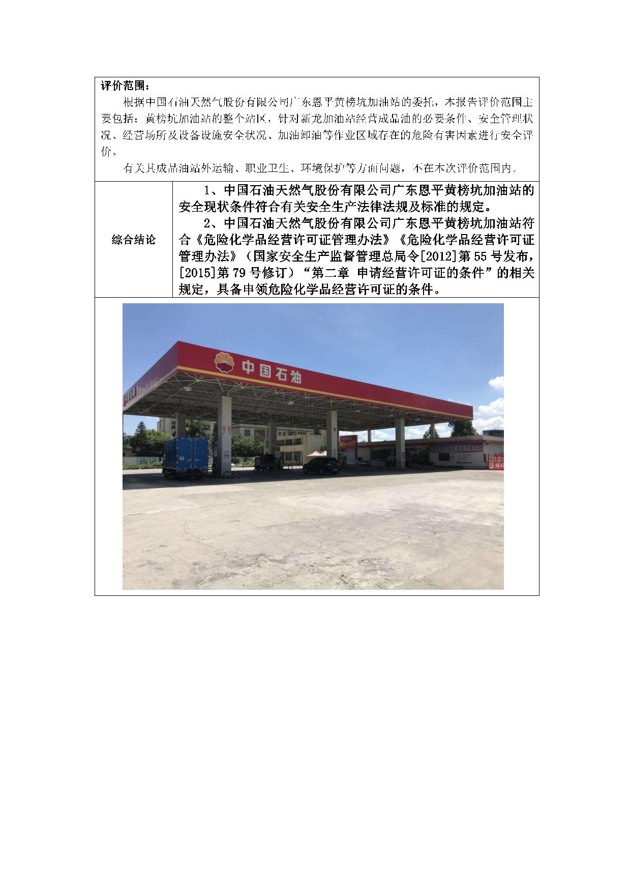 中国石油天然气股份有限公司广东恩平黄榜坑加油站