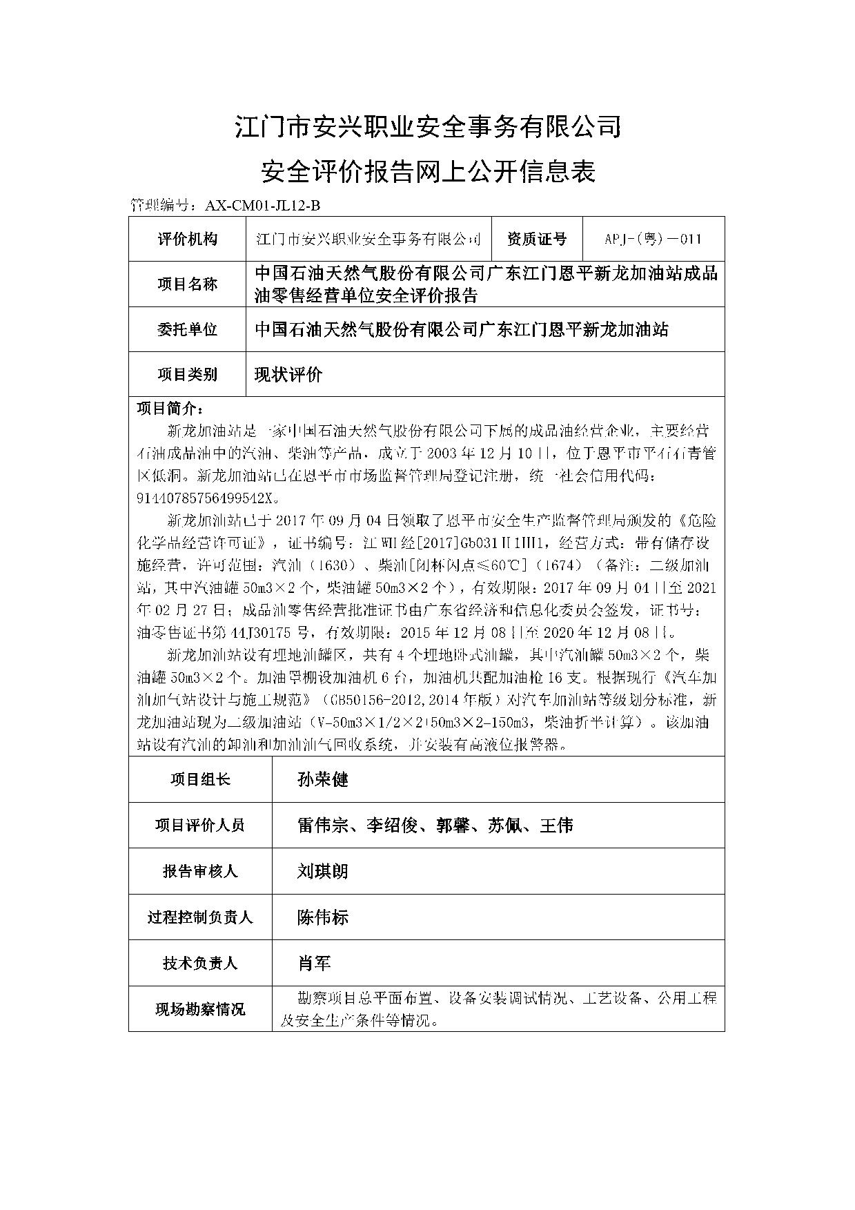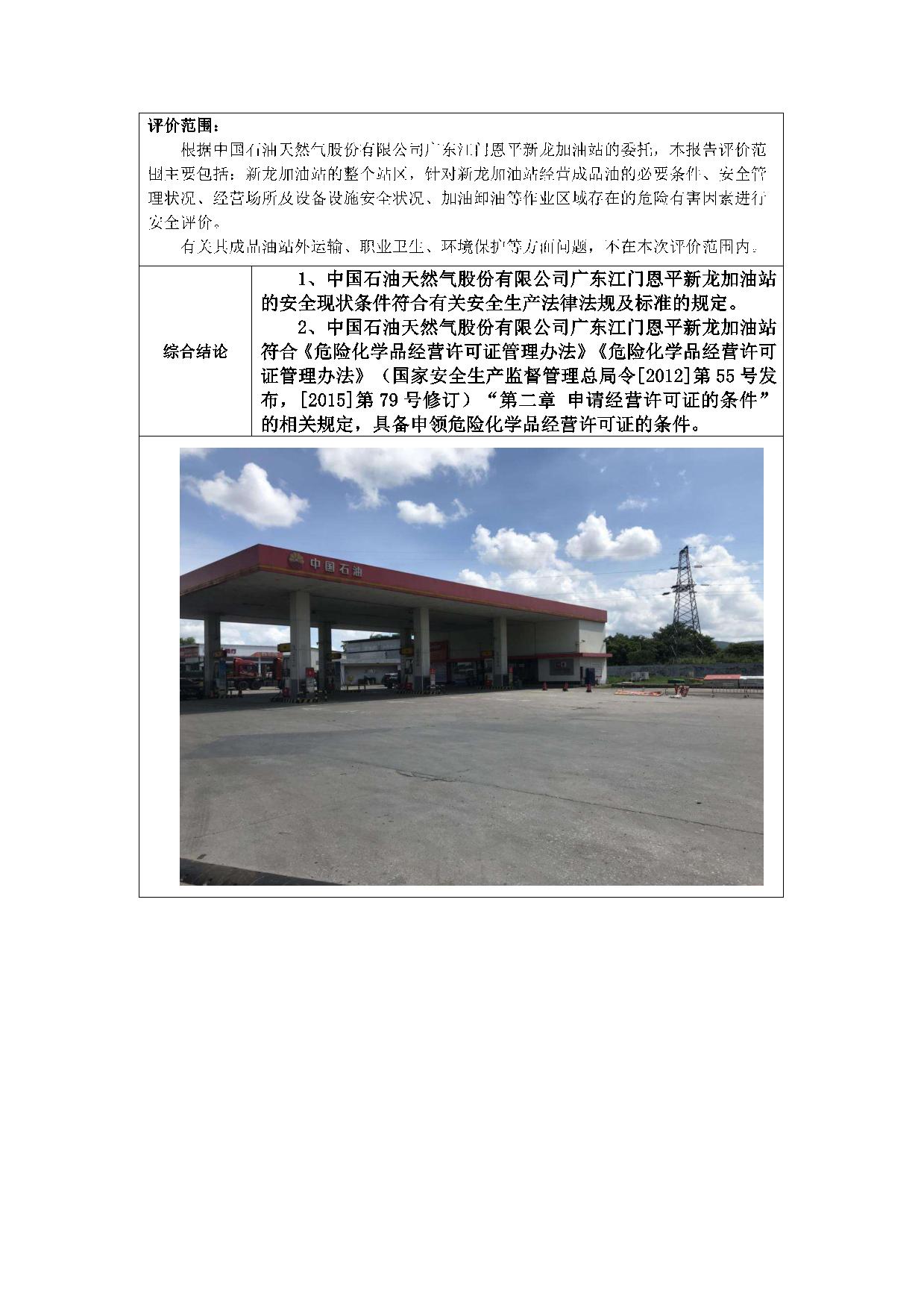 中国石油天然气股份有限公司广东江门恩平新龙加油站