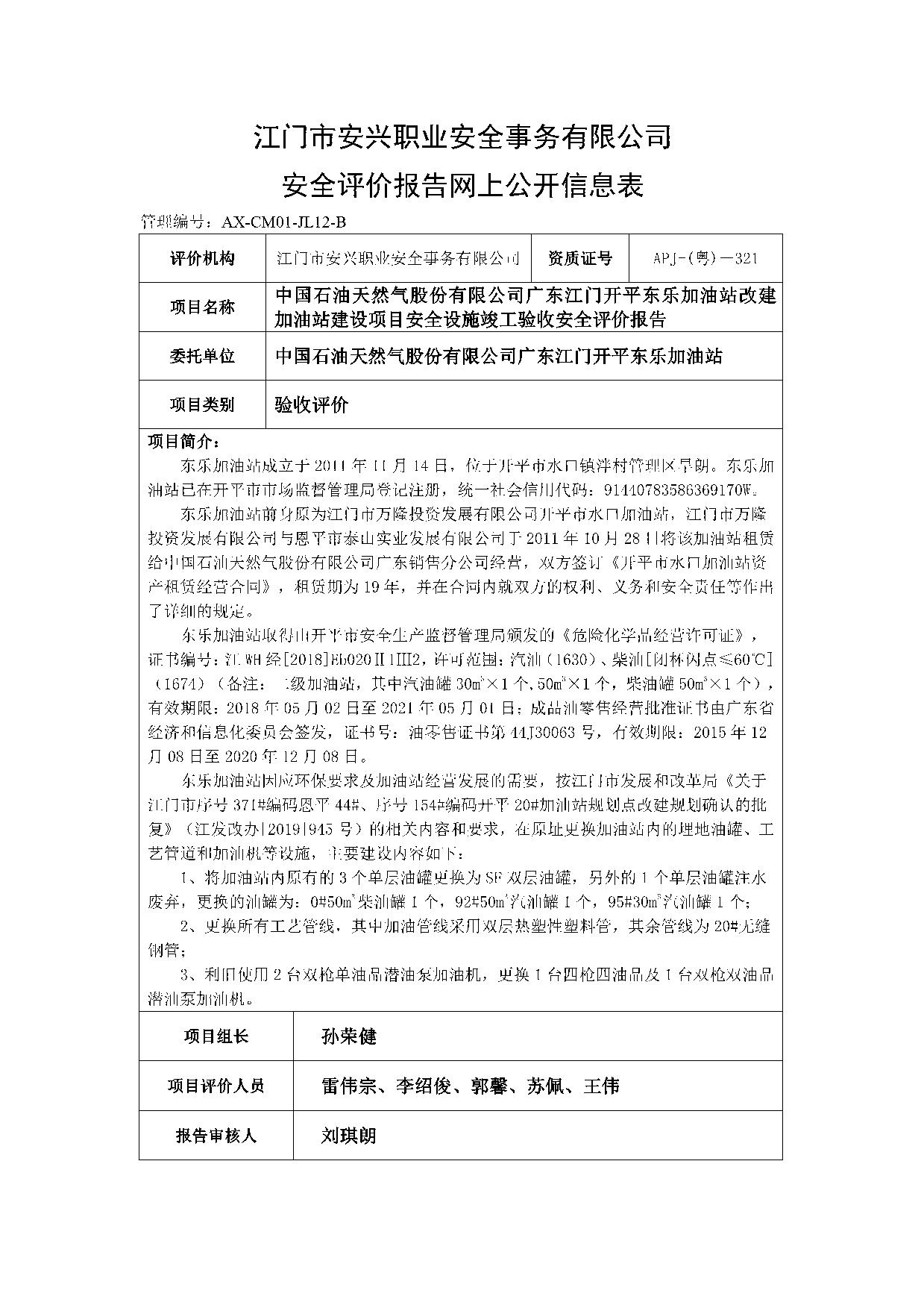 中国石油天然气股份有限公司广东江门开平东乐加油站