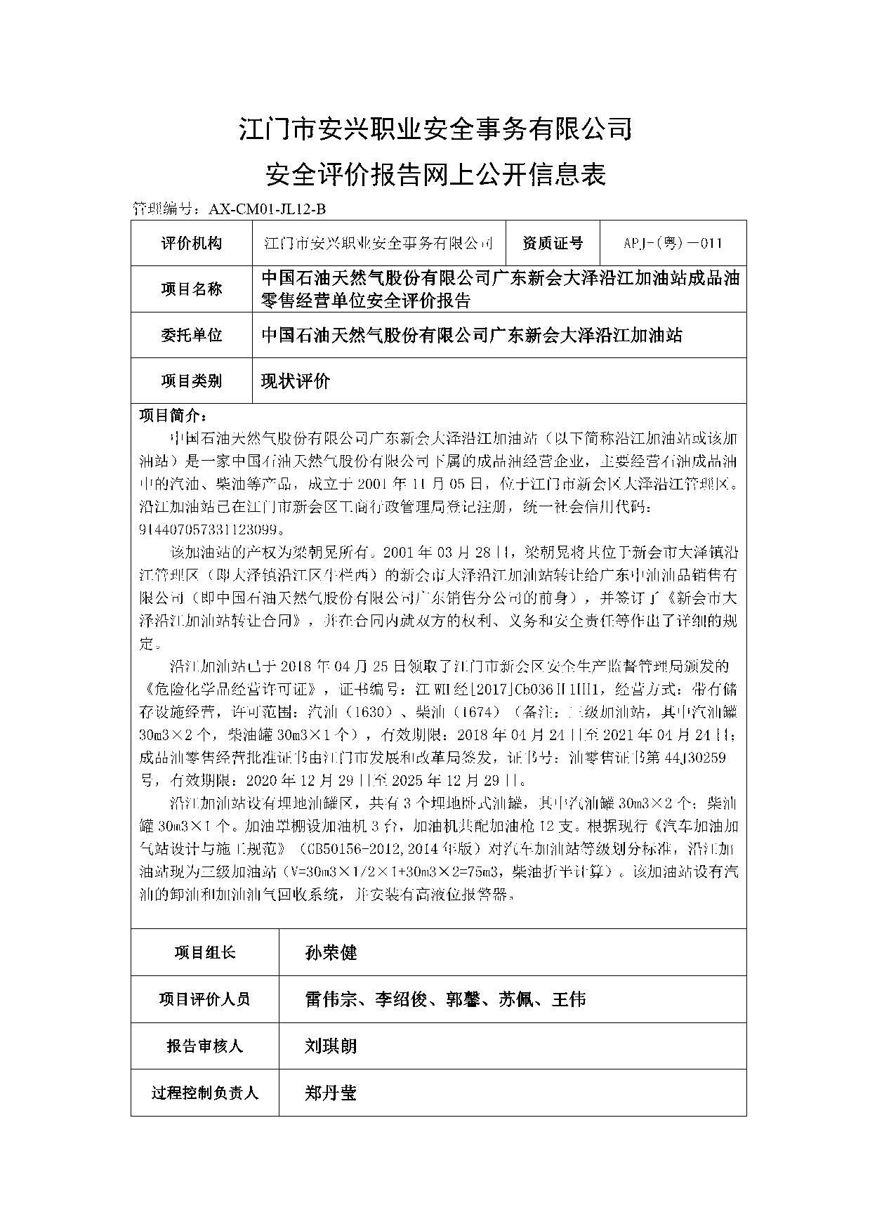 中国石油天然气股份有限公司广东新会大泽沿江加油站