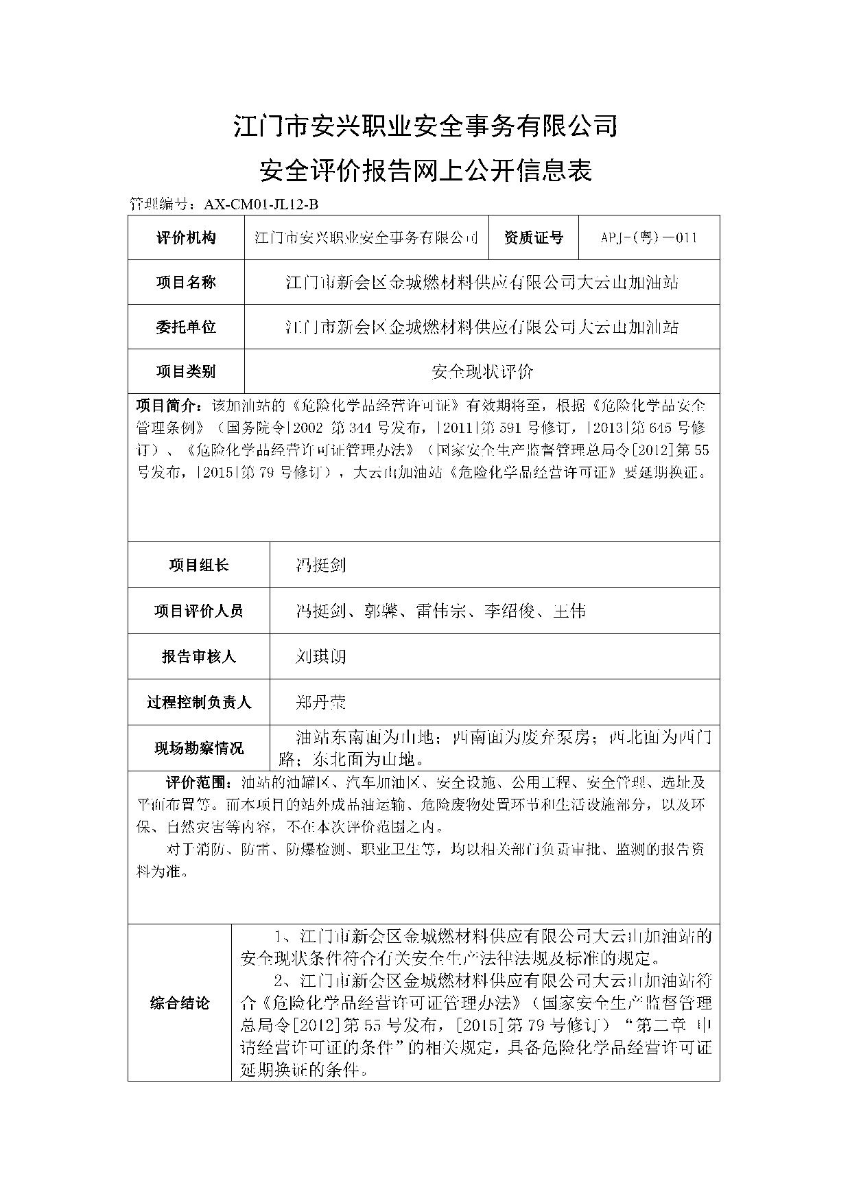 大云山加油站安全评价