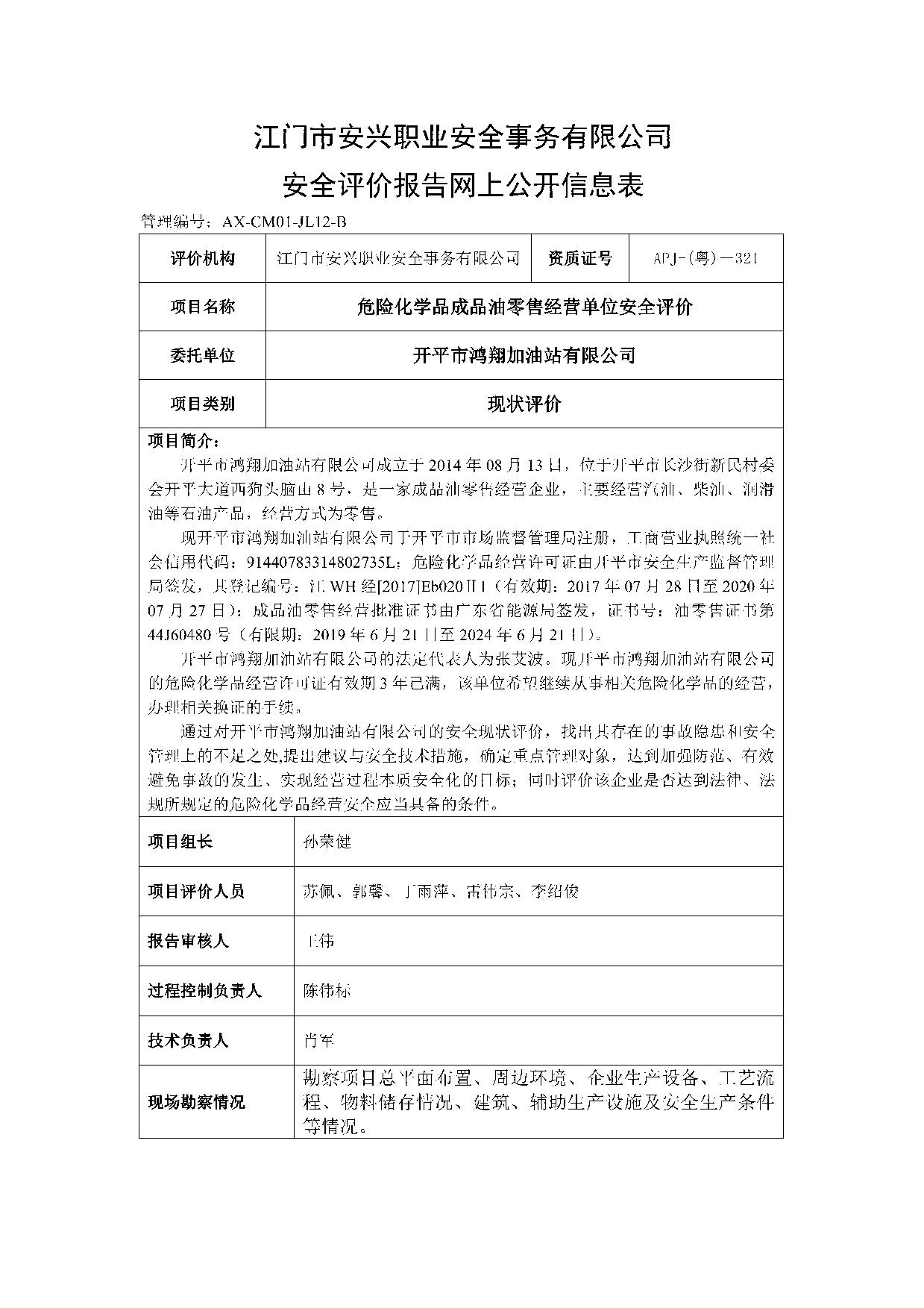 开平市鸿翔加油站有限公司
