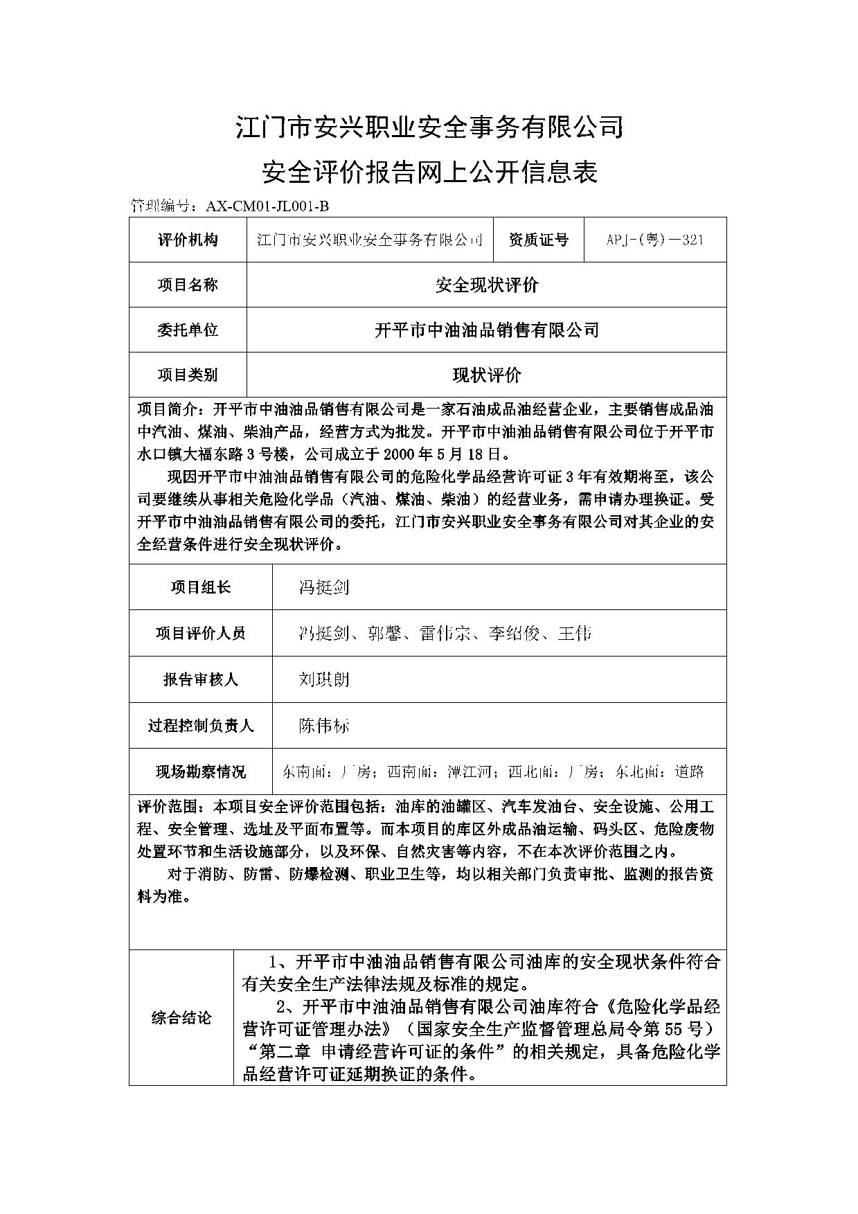 开平市中油油品销售有限公司现状评价