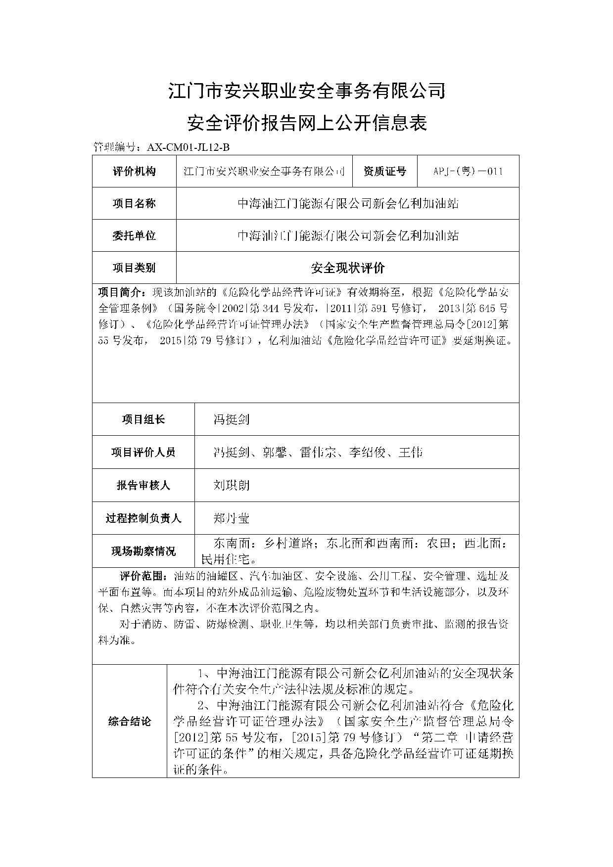 中海油亿利加油站安全评价