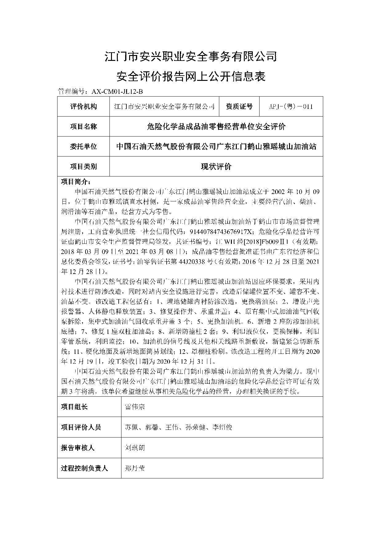 中石油鹤山雅瑶城山加油站